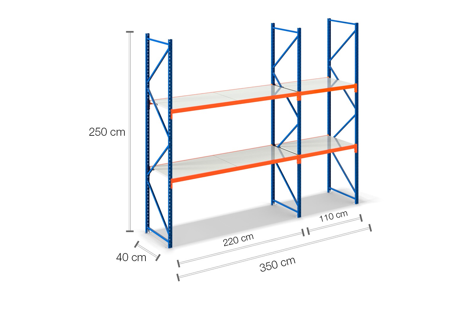 3,5 m storage rack LR2000 / 40 cm deep / 2,5 m high / 2 levels / rack layer Steel