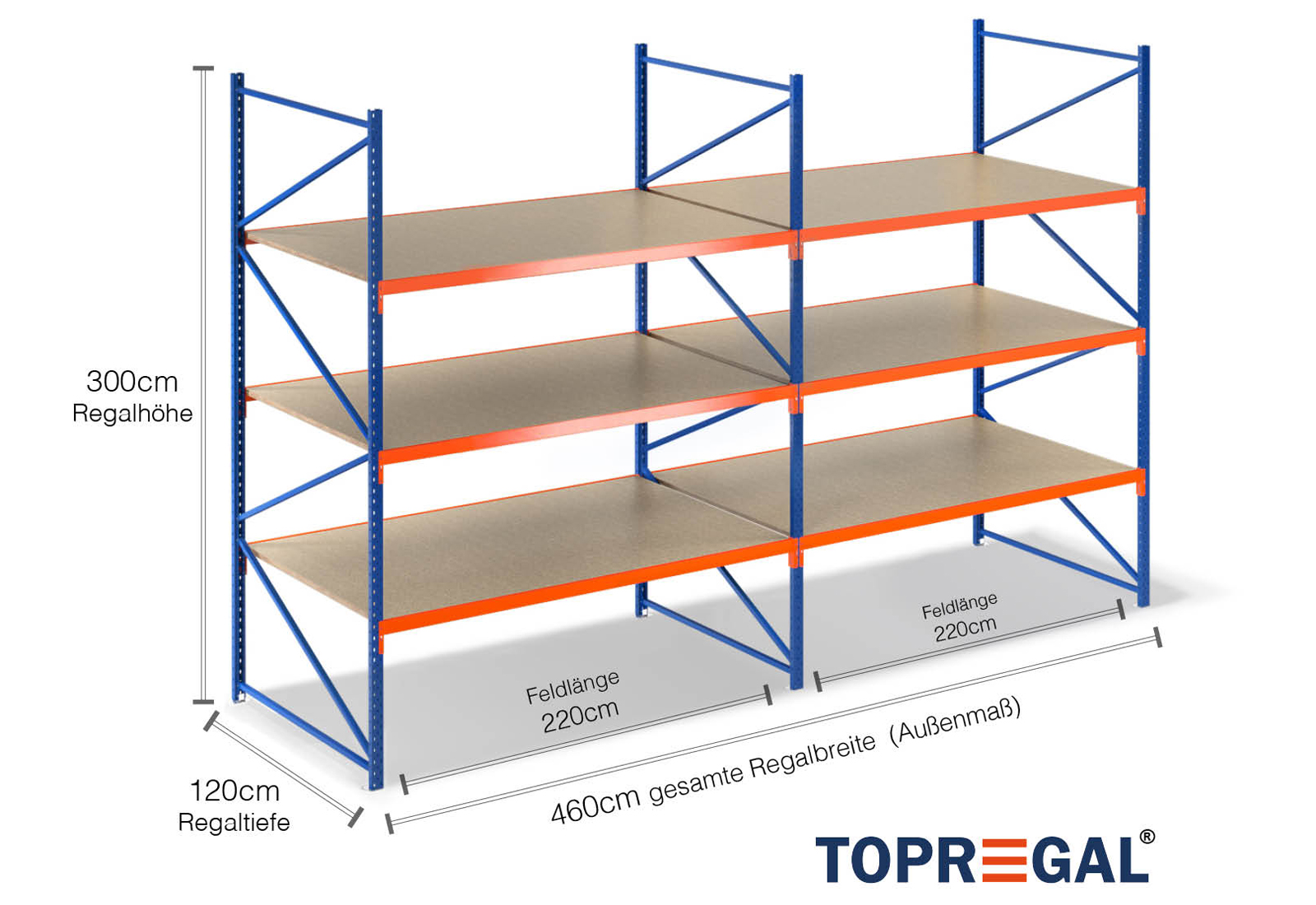 All data refer to evenly distributed loads. When loaded, the shelf load and field load must not be exceeded. In principle, the current guidelines on safety and health at work (german DGUV Rule 208-061) apply during use. TOPREGAL accepts no liability for accidents/damage caused by improper use. Our expert advisory team will be pleased to answer any questions you may have. Dimensions given are approximate and may deviate by a few centimetres. Contact us if you need the exact dimensions for your desired product.