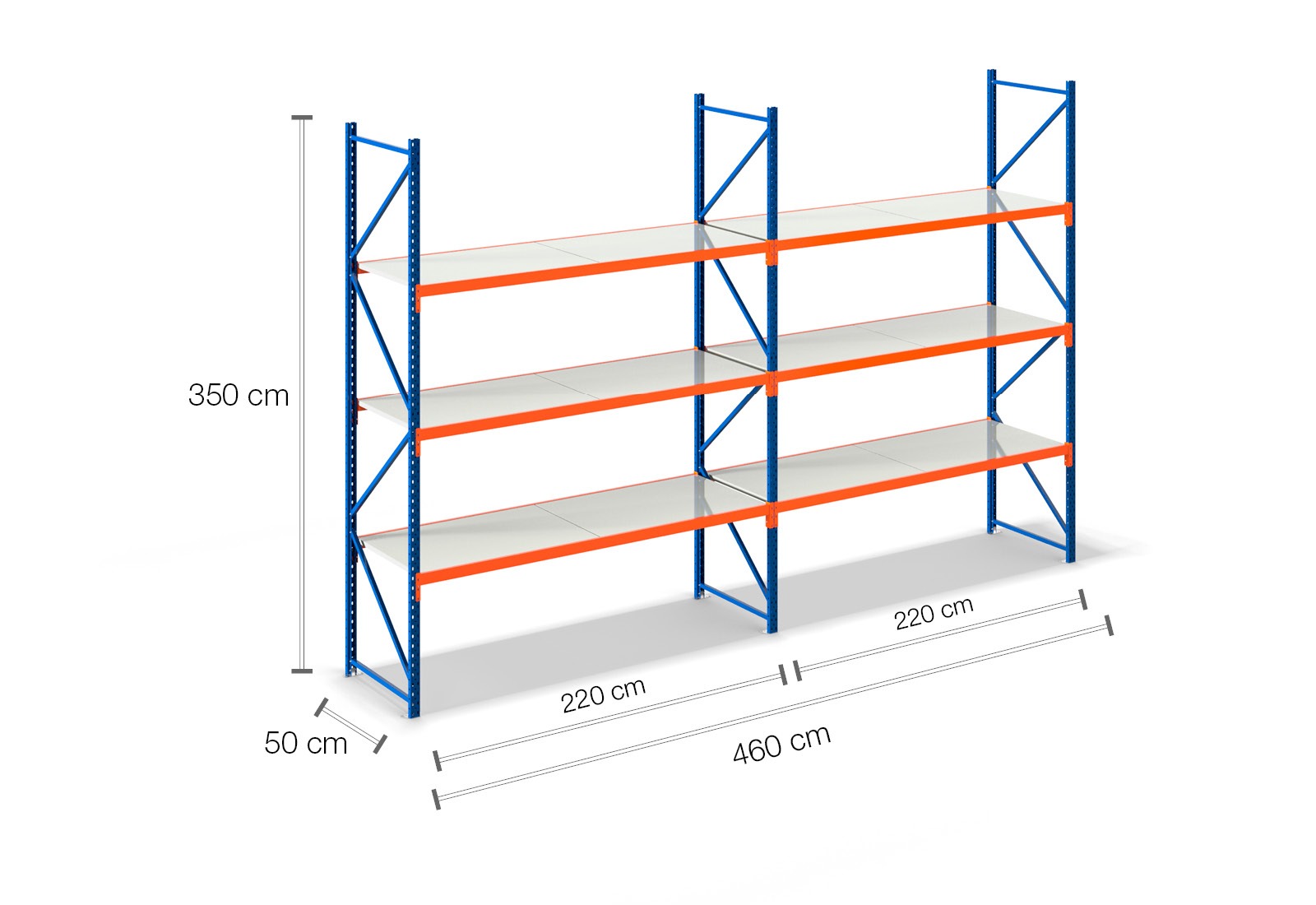 4,6 m storage rack LR2000 / 50 cm deep / 3,5 m high / 3 levels / rack layer Steel