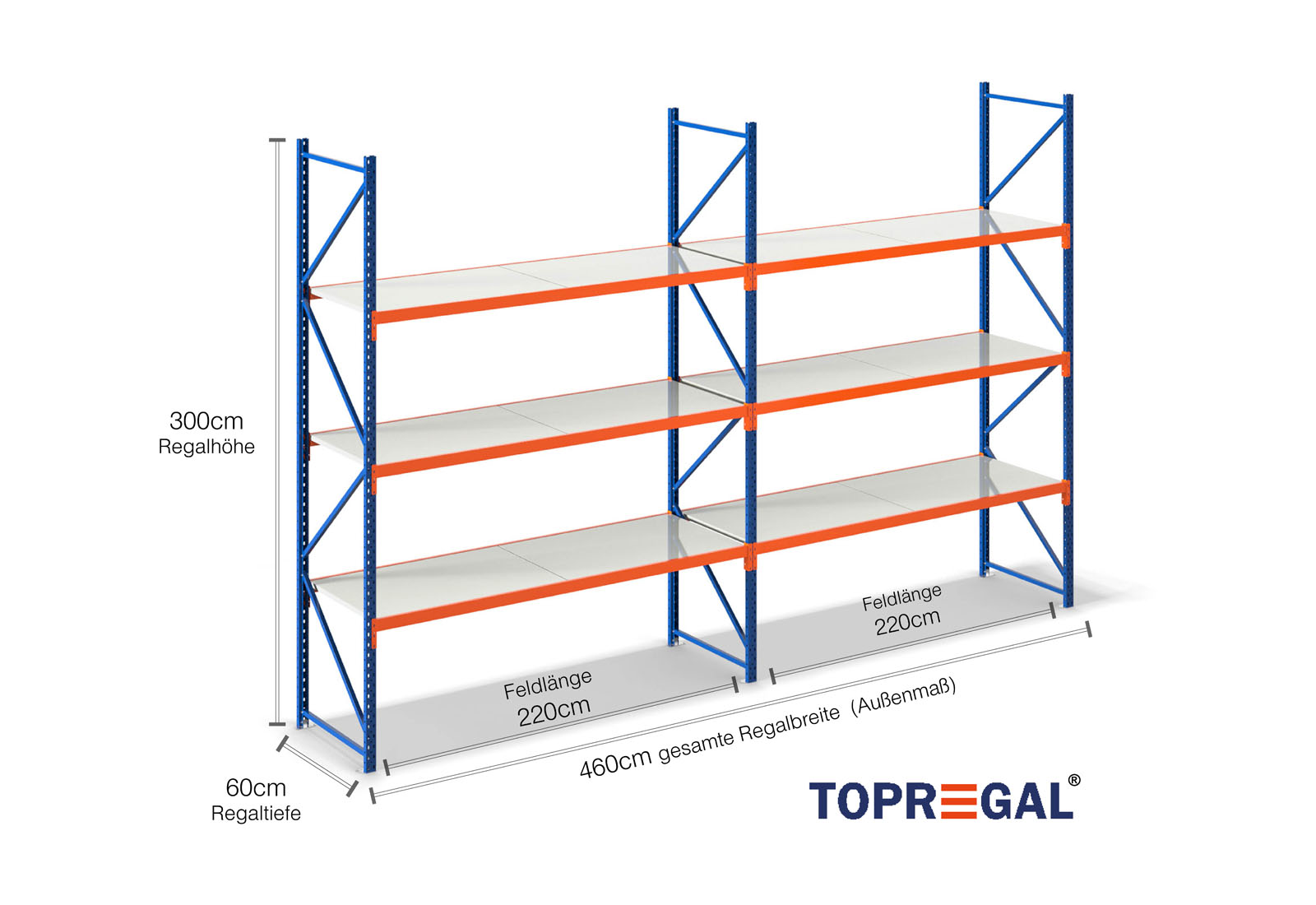 All data refer to evenly distributed loads. When loaded, the shelf load and field load must not be exceeded. In principle, the current guidelines on safety and health at work (german DGUV Rule 208-061) apply during use. TOPREGAL accepts no liability for accidents/damage caused by improper use. Our expert advisory team will be pleased to answer any questions you may have. Dimensions given are approximate and may deviate by a few centimetres. Contact us if you need the exact dimensions for your desired product.