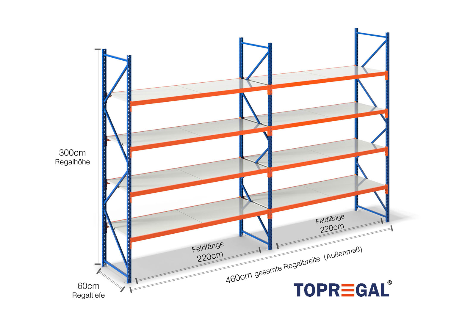 4,6 m storage rack LR2000 / 60 cm deep / 3 m high / 4 levels / rack layer Steel