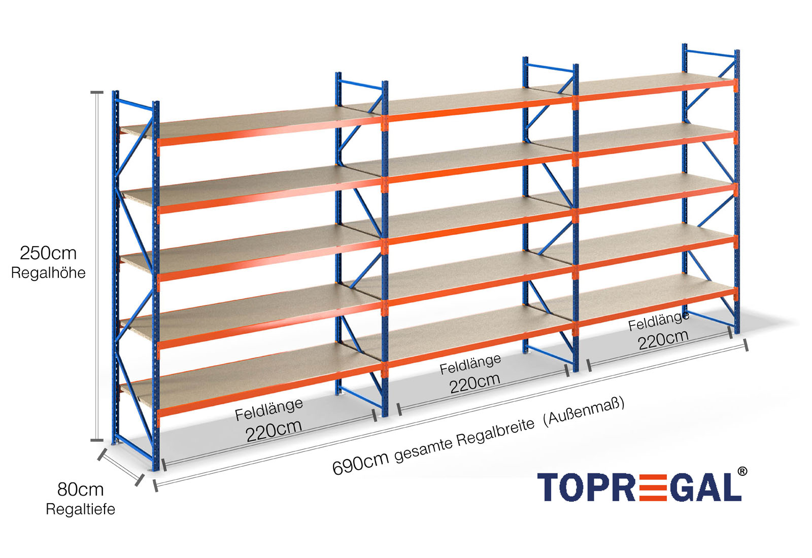 All data refer to evenly distributed loads. When loaded, the shelf load and field load must not be exceeded. In principle, the current guidelines on safety and health at work (german DGUV Rule 208-061) apply during use. TOPREGAL accepts no liability for accidents/damage caused by improper use. Our expert advisory team will be pleased to answer any questions you may have. Dimensions given are approximate and may deviate by a few centimetres. Contact us if you need the exact dimensions for your desired product.