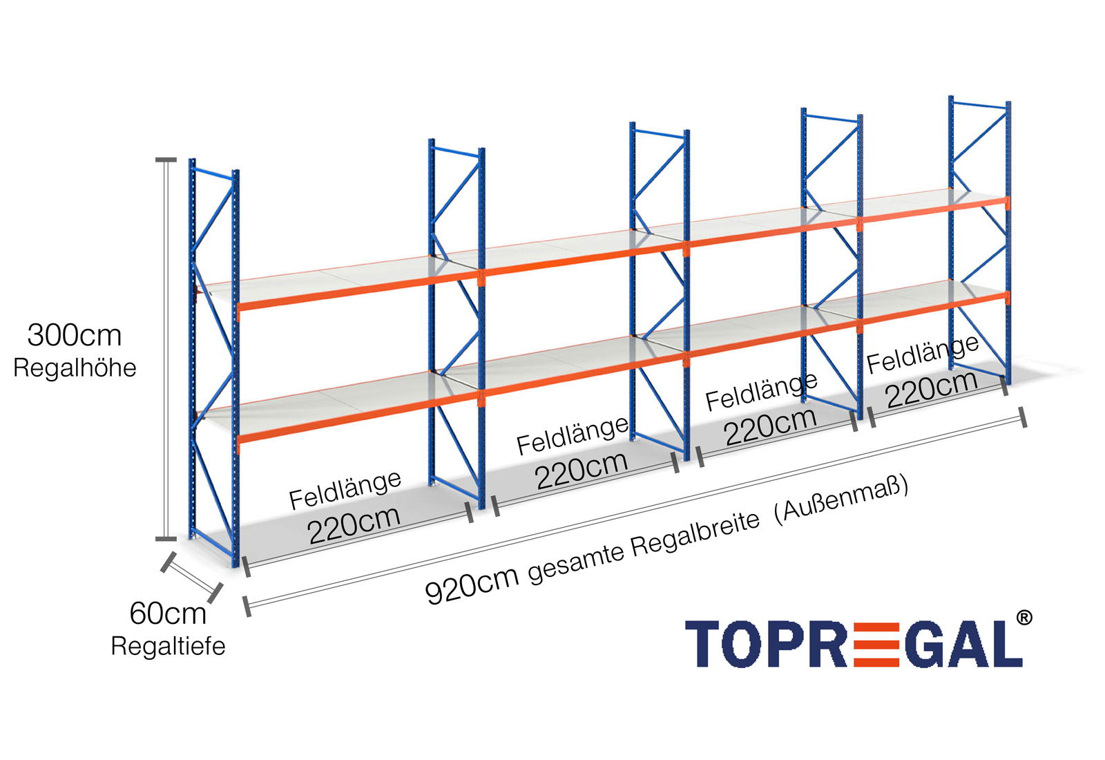 All data refer to evenly distributed loads. When loaded, the shelf load and field load must not be exceeded. In principle, the current guidelines on safety and health at work (german DGUV Rule 208-061) apply during use. TOPREGAL accepts no liability for accidents/damage caused by improper use. Our expert advisory team will be pleased to answer any questions you may have. Dimensions given are approximate and may deviate by a few centimetres. Contact us if you need the exact dimensions for your desired product.