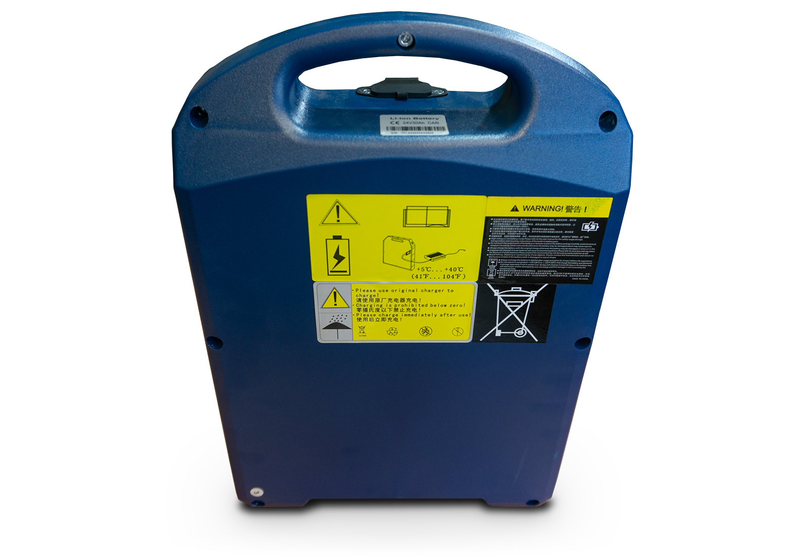 An additional replacement battery. It increases the operating time of the electric pallet truck enormously. The battery can be changed quickly and easily in just a few seconds. While a battery is being charged (maximum charging time 2,5 h), the pallet truck is ready with a replacement battery for activities in the warehouse, plant and production. The lithium iron phosphate battery with a dead weight of is the centrepiece and drive.