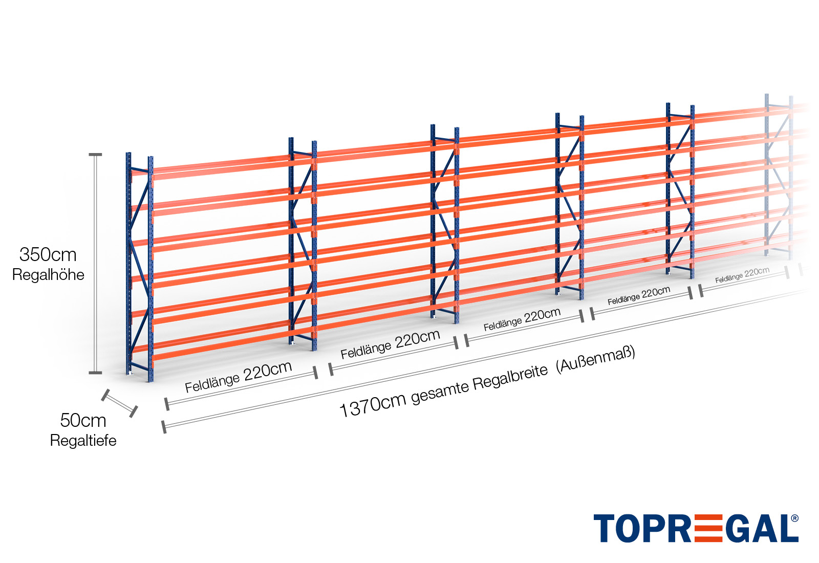 All data refer to evenly distributed loads. When loaded, the shelf load and field load must not be exceeded. In principle, the current guidelines on safety and health at work (german DGUV Rule 208-061) apply during use. TOPREGAL accepts no liability for accidents/damage caused by improper use. Our expert advisory team will be pleased to answer any questions you may have. Dimensions given are approximate and may deviate by a few centimetres. Contact us if you need the exact dimensions for your desired product.