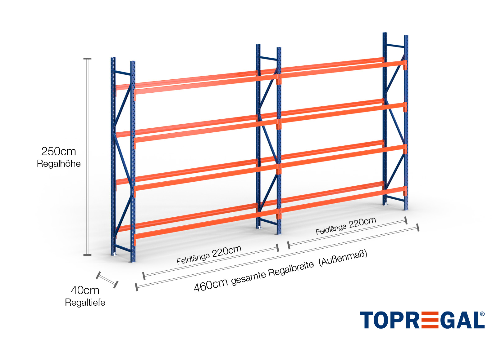 All data refer to evenly distributed loads. When loaded, the shelf load and field load must not be exceeded. In principle, the current guidelines on safety and health at work (german DGUV Rule 208-061) apply during use. TOPREGAL accepts no liability for accidents/damage caused by improper use. Our expert advisory team will be pleased to answer any questions you may have. Dimensions given are approximate and may deviate by a few centimetres. Contact us if you need the exact dimensions for your desired product.