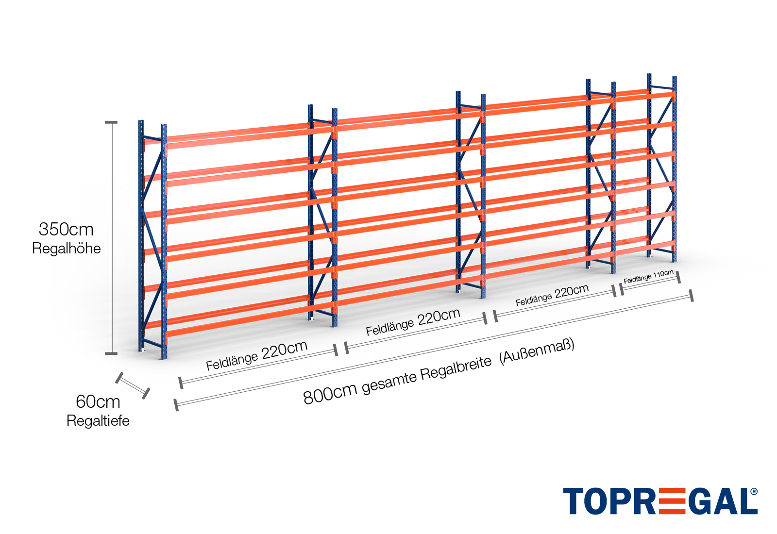 All data refer to evenly distributed loads. When loaded, the shelf load and field load must not be exceeded. In principle, the current guidelines on safety and health at work (german DGUV Rule 208-061) apply during use. TOPREGAL accepts no liability for accidents/damage caused by improper use. Our expert advisory team will be pleased to answer any questions you may have. Dimensions given are approximate and may deviate by a few centimetres. Contact us if you need the exact dimensions for your desired product.