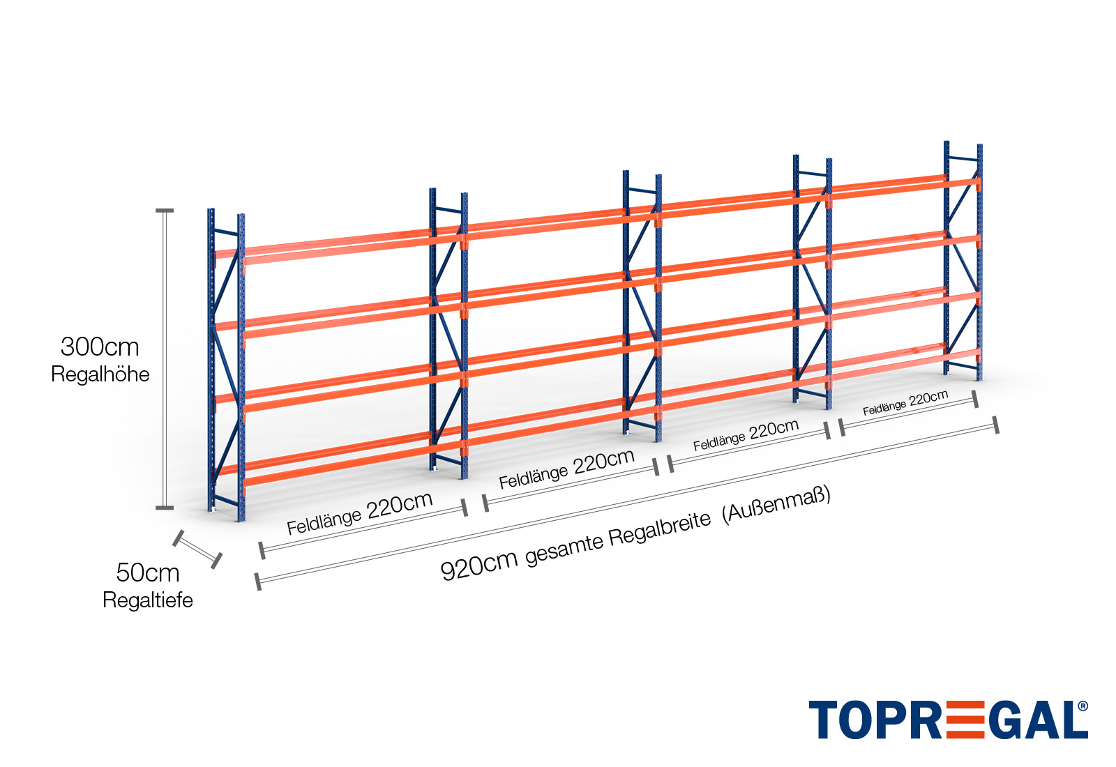 All data refer to evenly distributed loads. When loaded, the shelf load and field load must not be exceeded. In principle, the current guidelines on safety and health at work (german DGUV Rule 208-061) apply during use. TOPREGAL accepts no liability for accidents/damage caused by improper use. Our expert advisory team will be pleased to answer any questions you may have. Dimensions given are approximate and may deviate by a few centimetres. Contact us if you need the exact dimensions for your desired product.