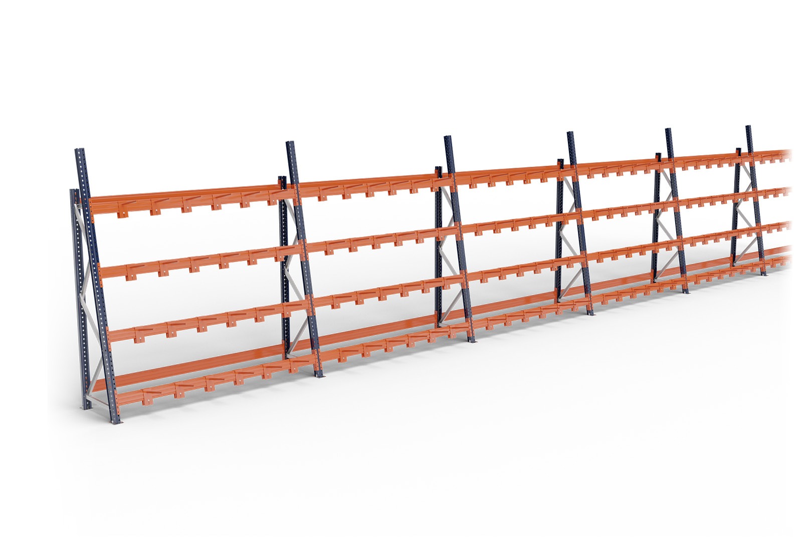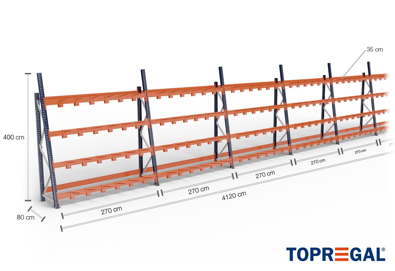 41,2 m vertical rack VR1500 / 4 m high / 80 cm deep / 4 levels / 352 x cantilever separator 350 mm