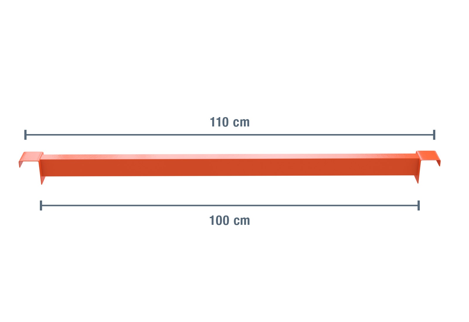 The 1.100 mm support bar is suitable for use in the 1.100 mm-deep pallet rack.