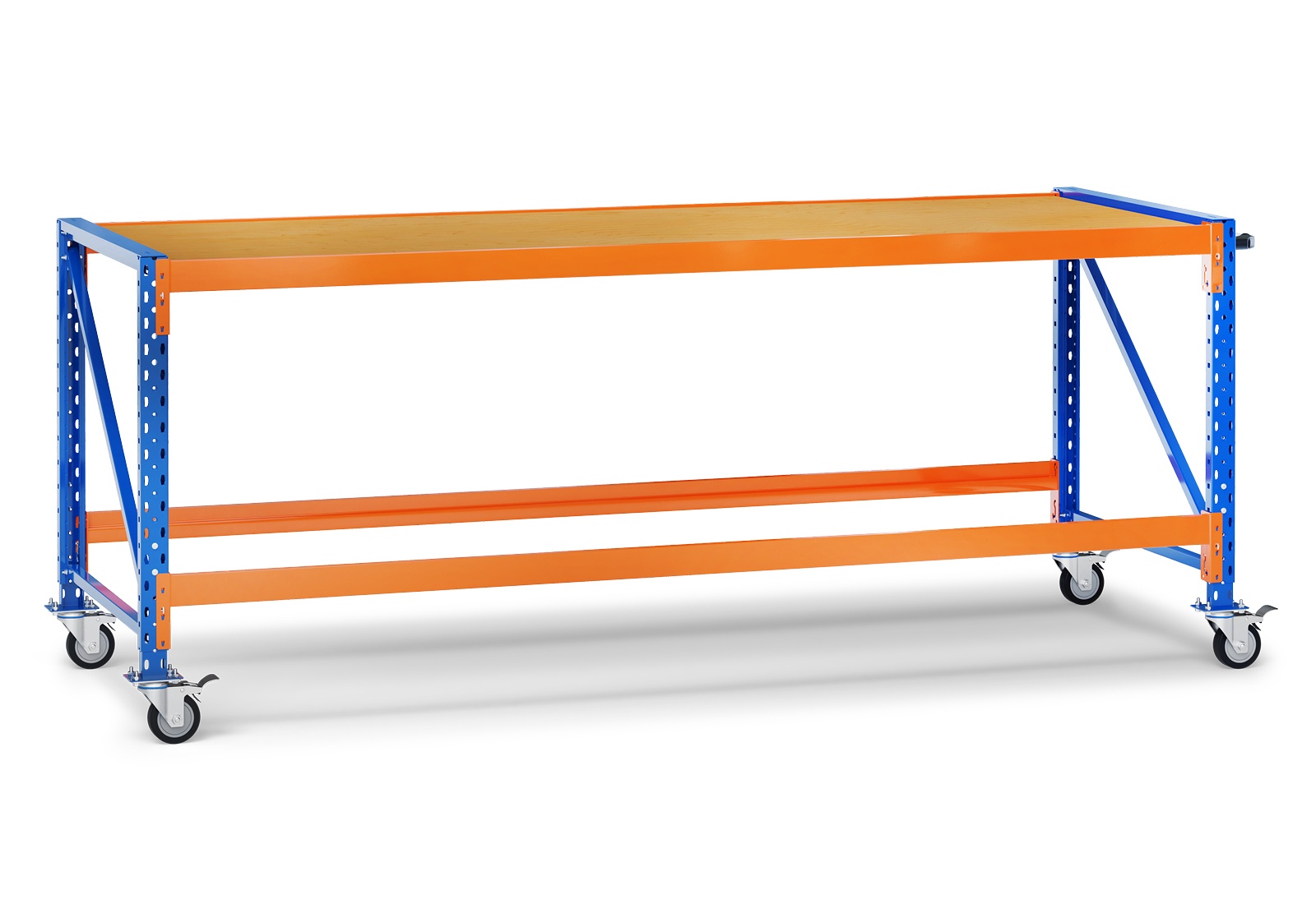This multipurpose workbench features 4 castors with locking brakes, making it suitable for a wide range of applications. It means that packing stations, incoming goods areas or the assembly area can be moved through different rooms and halls. Transportation of stored tools or semi-finished products is also possible with this mobile workbench.
