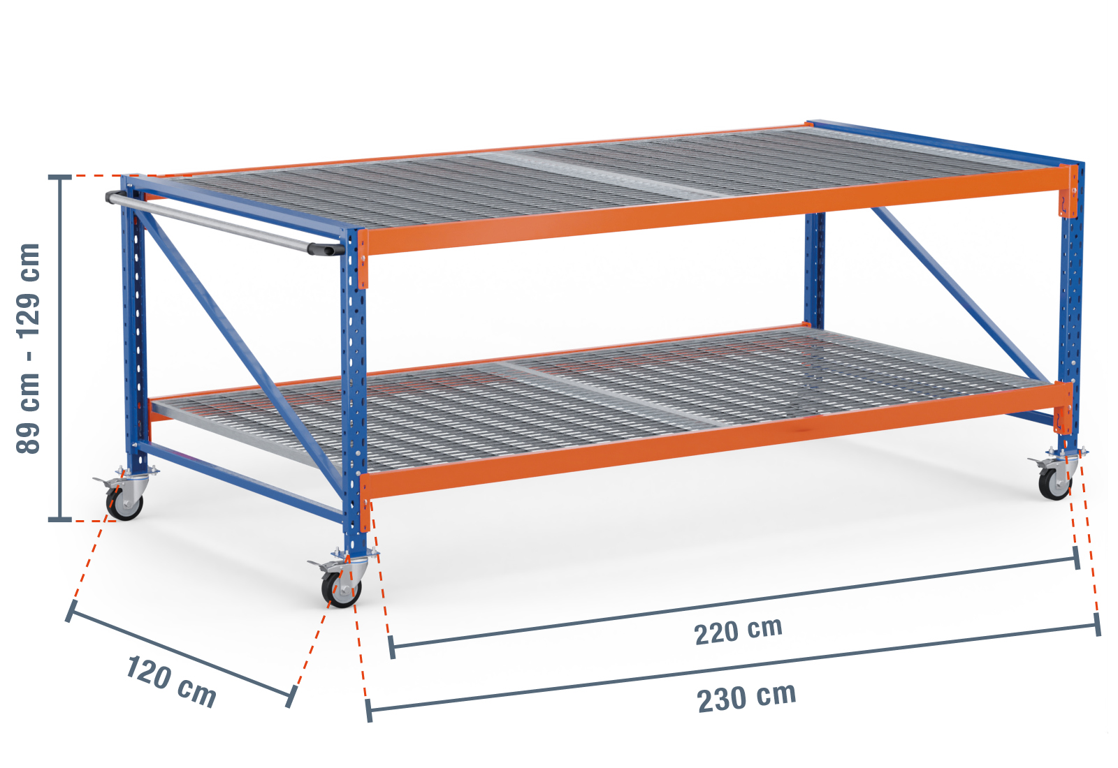 - 2 x storage-rack mesh shelf 220 cm wide / 120 cm deep