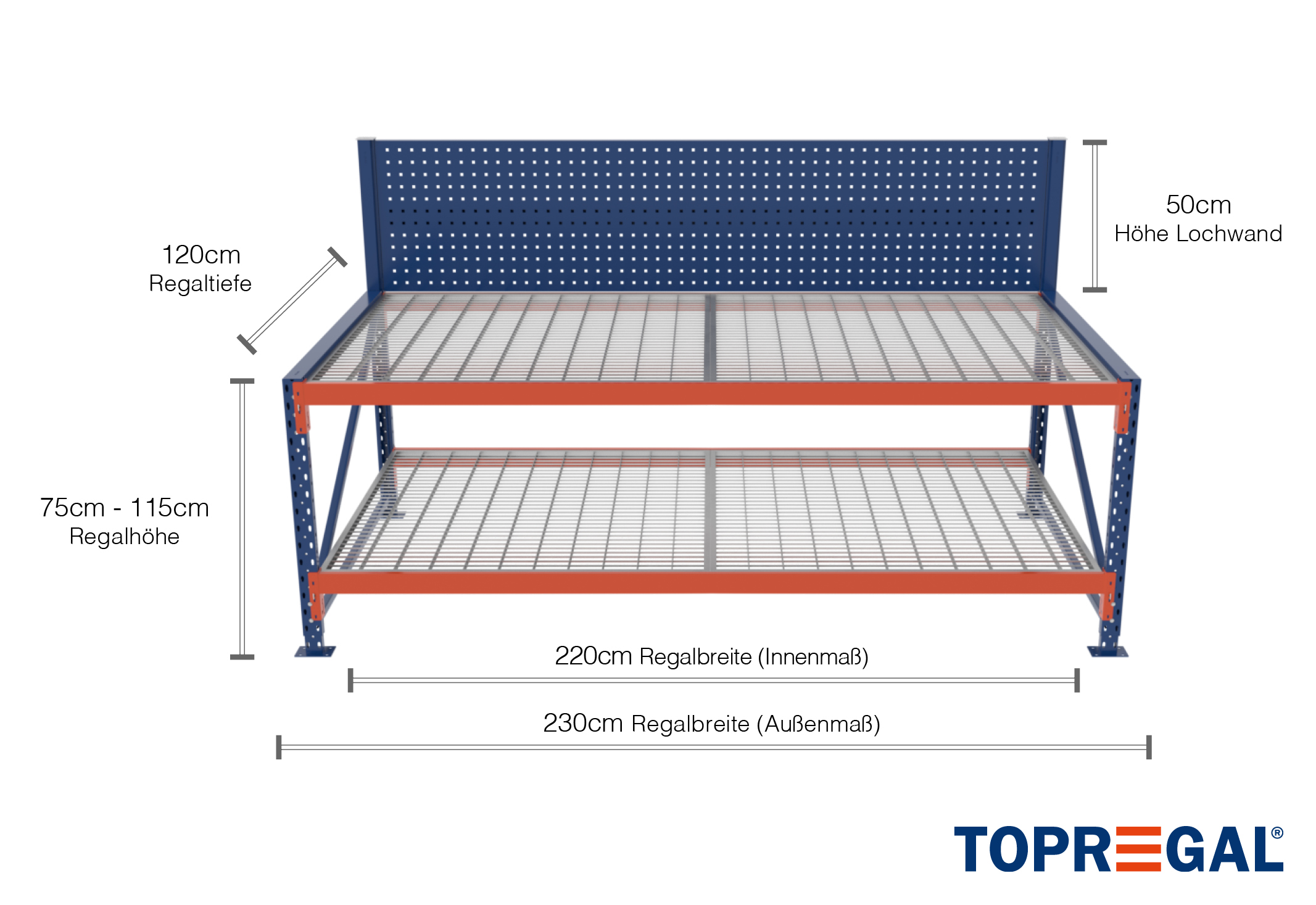 - 1 x storage-rack perforated rear panel220 cm wide, 50 cm high