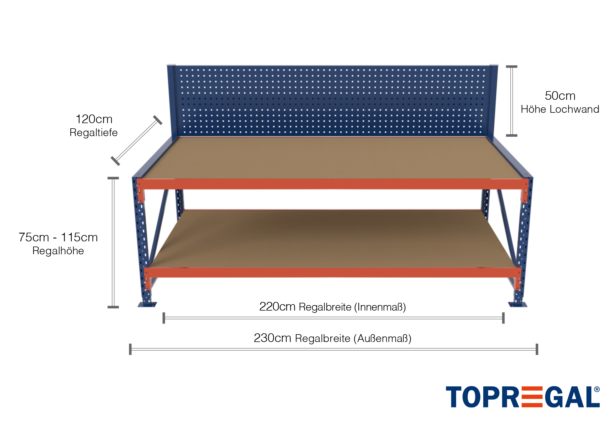 - 1 x storage-rack perforated rear panel220 cm wide, 50 cm high
