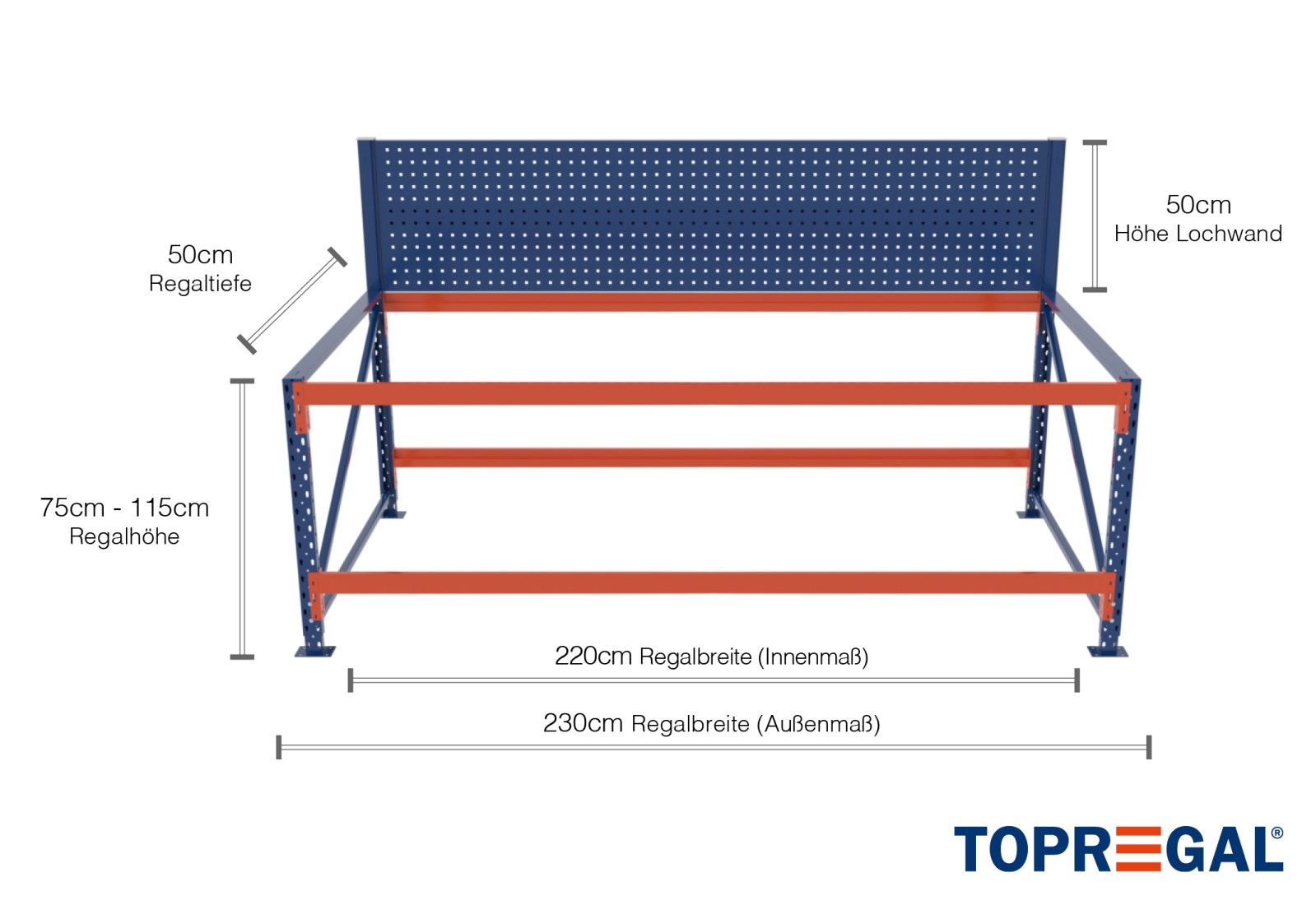 - 1 x storage-rack perforated rear panel 220 cm wide, 50 cm high