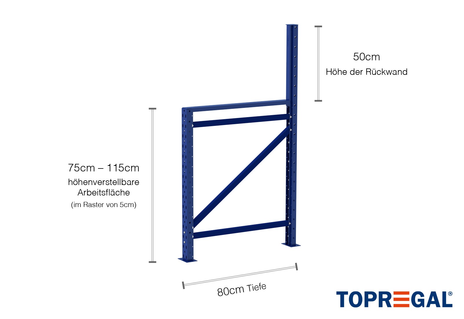 Packing-table storage rack upright 75–115cm height adjustable / 80cm deep (for perforated back panel)