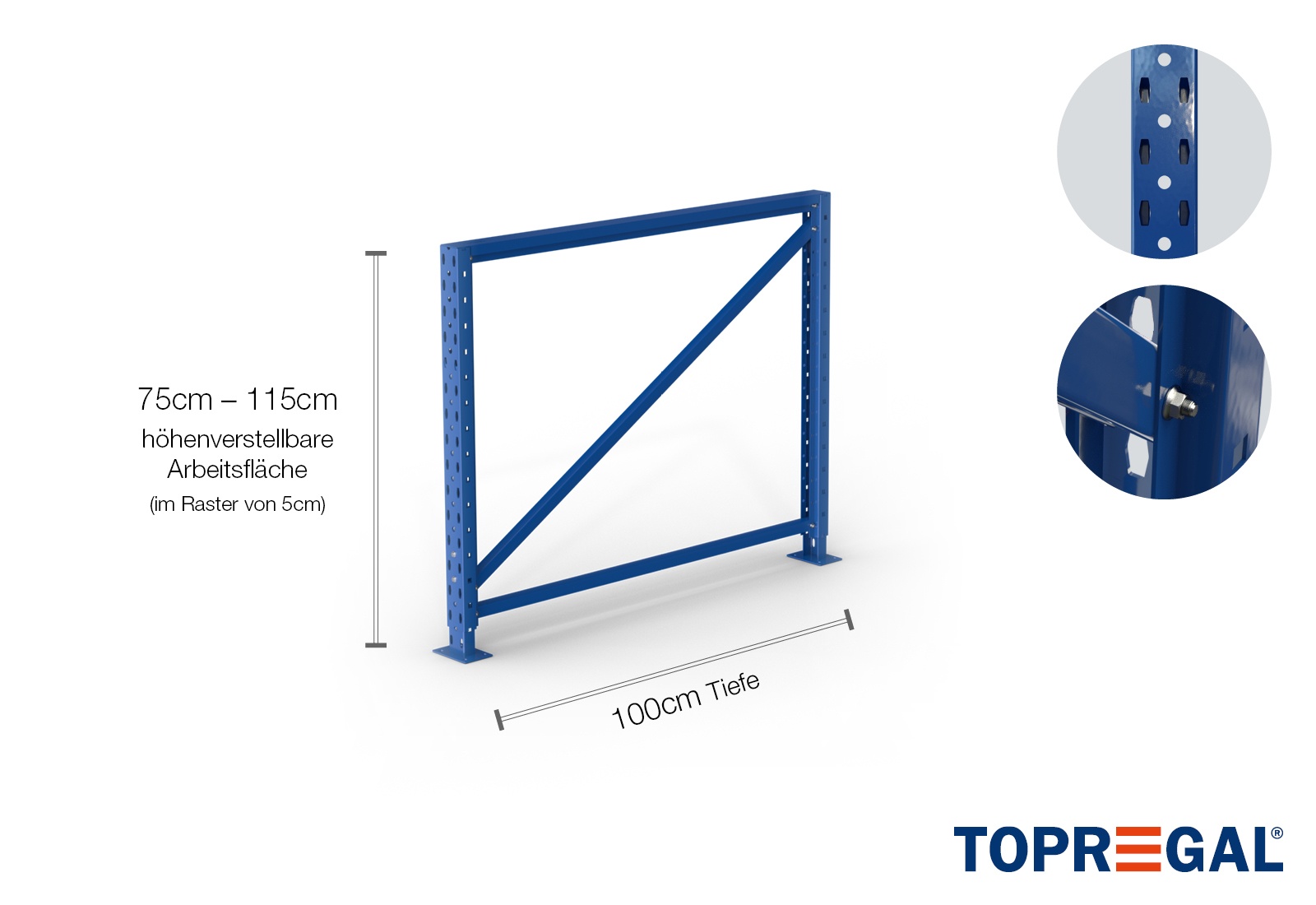 • Complete packing-table storage rack upright incl. foot parts and struts, height adjustable from 75–115cm, 100cm deep